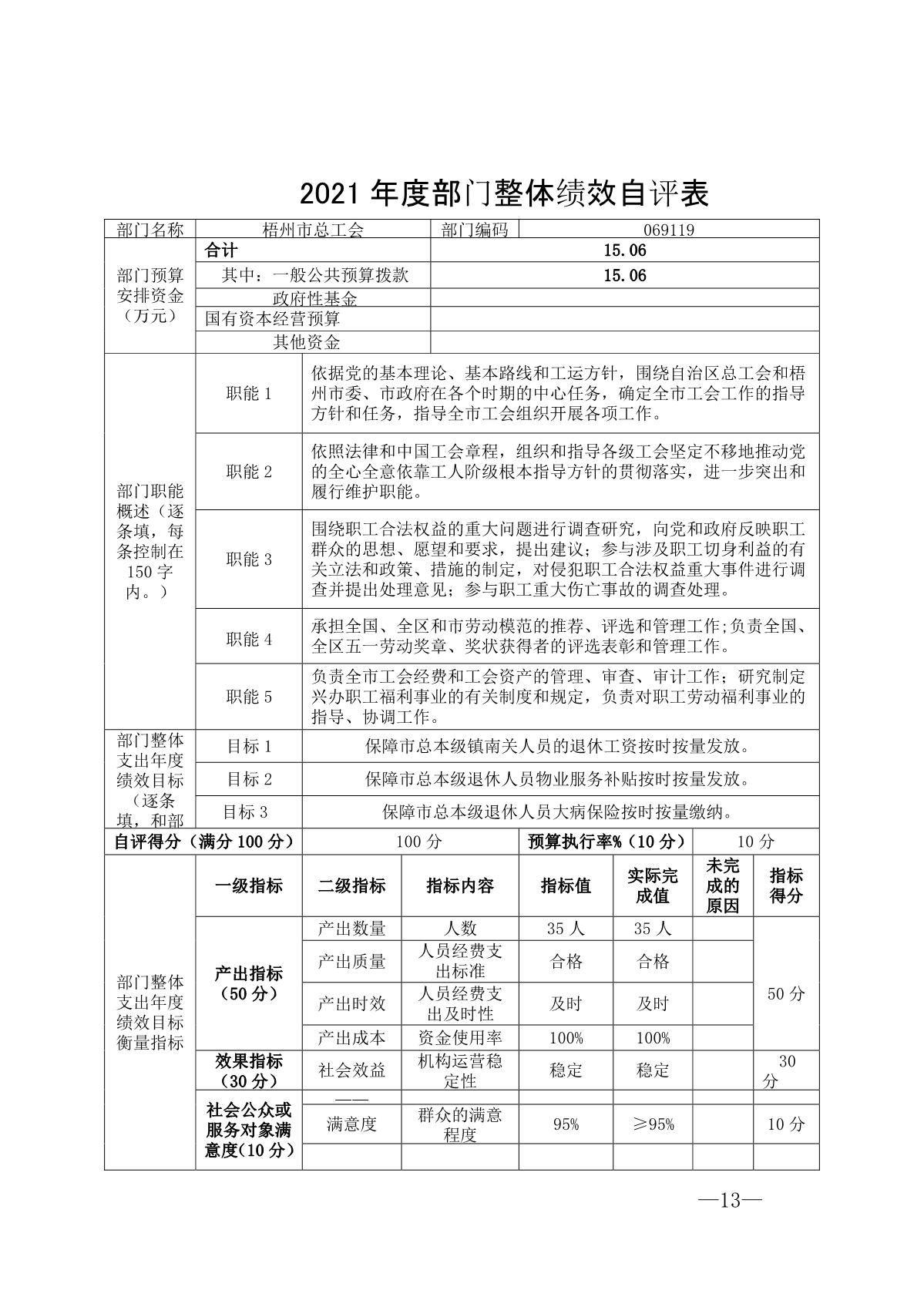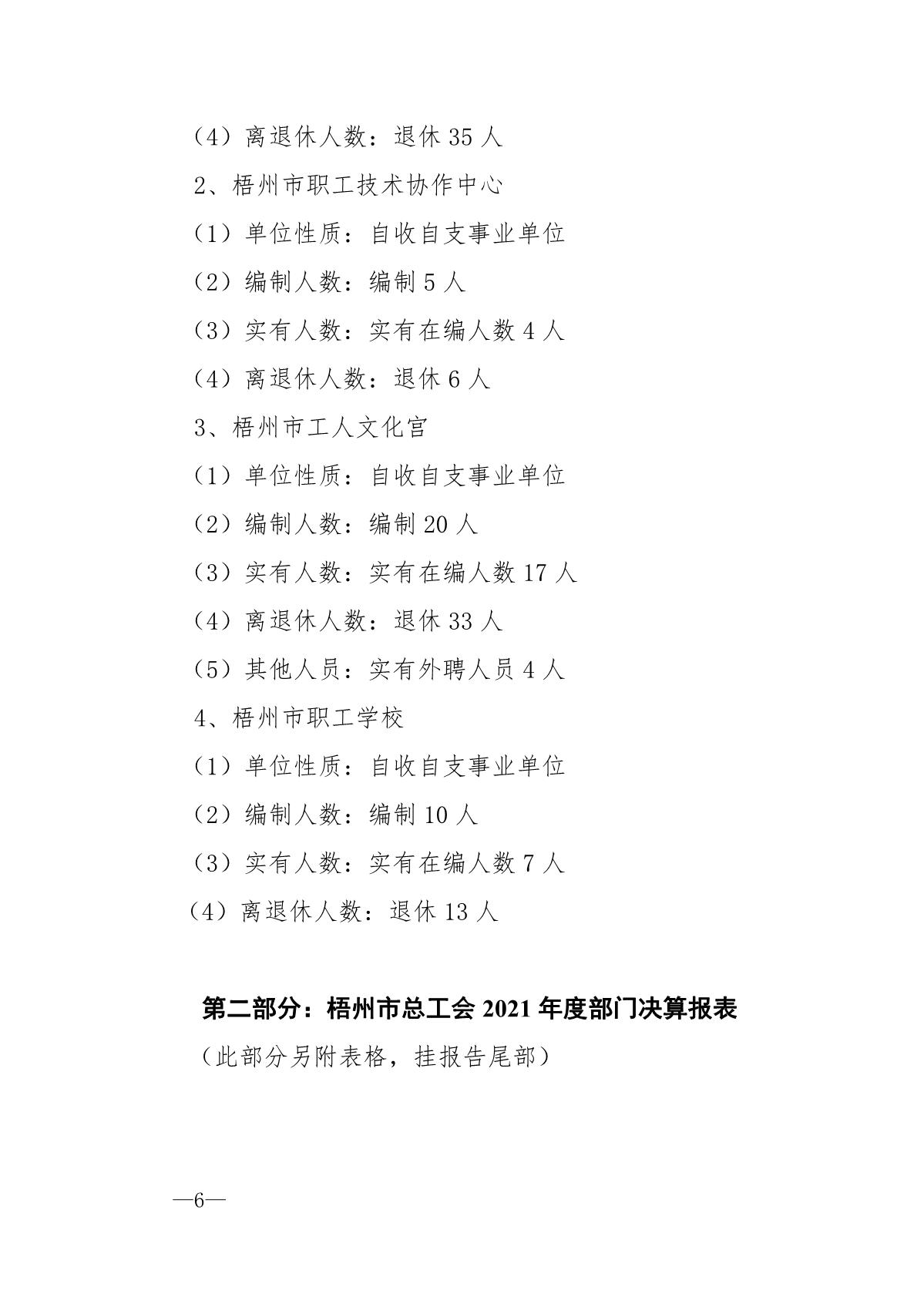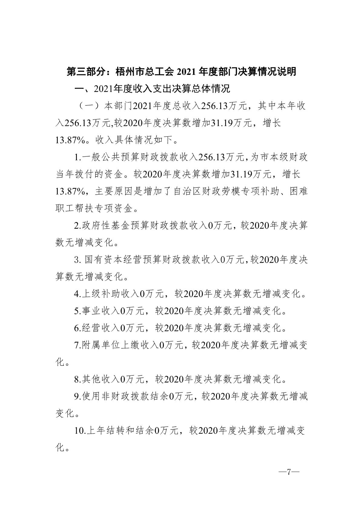 梧州市總工會2021年度部門決算公開說明