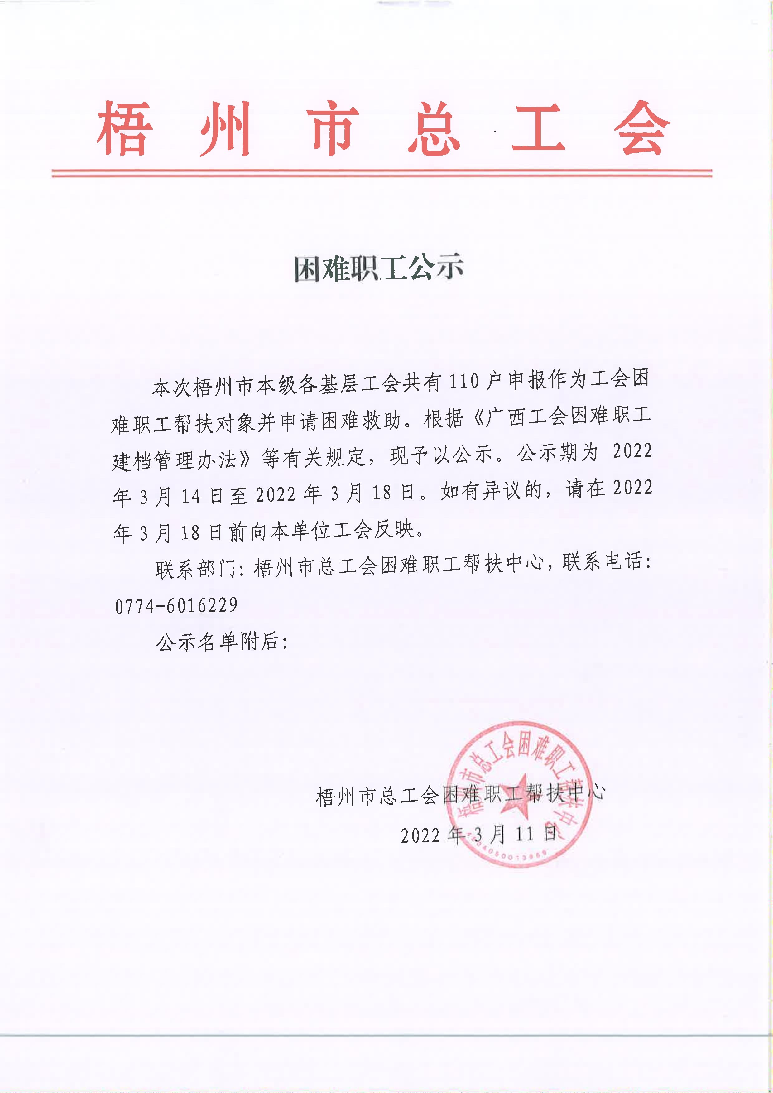 來(lái)源:梧州市總工會(huì)   作者:   瀏覽:次   發(fā)表時(shí)間:2022-03-14 17:09:05